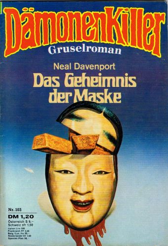 Bei Das Geheimnis der Maske denke ich, dass hier Hauszeichner Firuz Askin als Künstler infrage kommt. Dieses Motiv ist so speziell auf den Romaninhalt zugeschnitten, dass es sich hier um eine Auftragsarbeit gehandelt haben muss: der Kopf der O-toku-San mit den Memory-Barren im Innern.