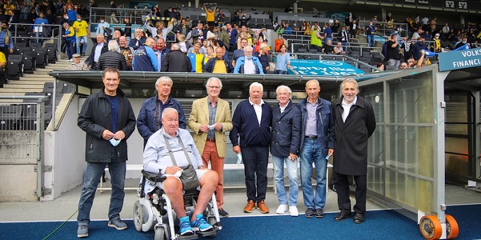 Bewegender Augenblick vor dem Anpfiff des Heimspiels der Löwen gegen den VfL Osnabrück. Mit einer Schweigeminute gedenken die Blau-Gelben dem Idol und Publikumsliebling Danilo Popivoda. Kapitän Jasmin Fejzic hielt dabei ein Popivoda-Trikot mit der Rückennummer 7 vor sich. Am Spielfeldrand reihten sich seine ehemaligen Mannschaftkameraden Wolfgang Grobe, Dietmar Erler, Franz Merkhoffer, Peter Lübbecke, Reiner Hollmann, Uwe Krause, Dieter Zembski und Bernd Gersdorff auf und verabschieden sich vom ehemaligen Außenbahnspieler, der zwischen 1975 und 1980 in insgesamt 126 Bundesligapartien den roten Löwen auf der Brust trug und seiner Zeit bei den Löwen absoluter Publikumsliebling war.