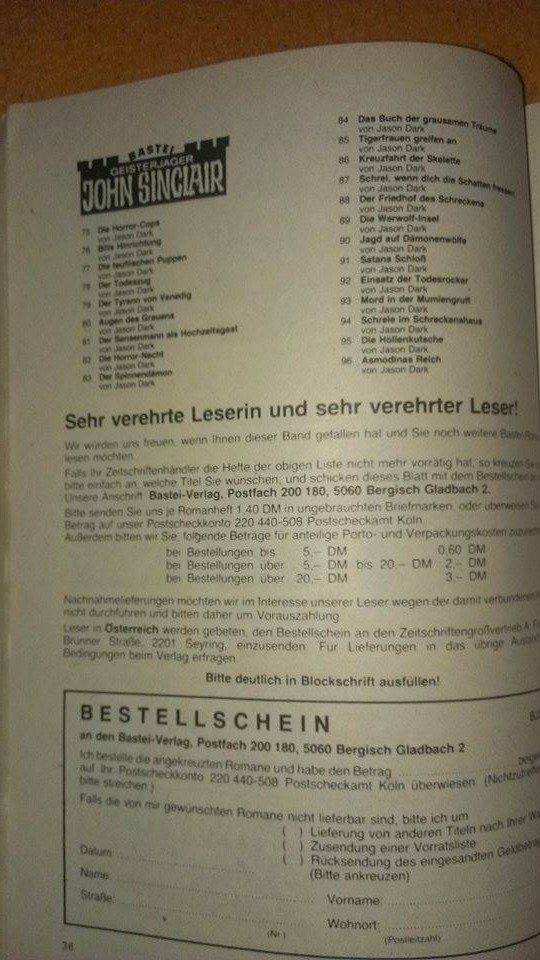 Auf den Seiten im Mittelteil wo sich sonst Jason Dark´s Leserseite befindet, ist in dieser Ausgabe "Deutschlands großes Gruselprogramm" zu finden. Die Leserseite befindet sich auf den Seiten 52/53.