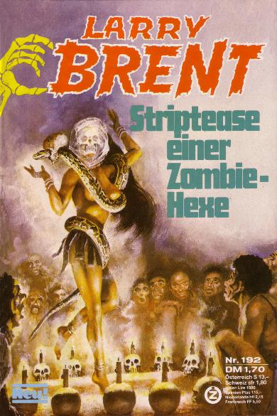 Das Gesicht des Priesters war eine einzige abstoßende Fratze. Das Innere der Hütte glich einem Tollhaus. Fackeln und Öllichter rußte. Auf den schmutzigen Lehmboden waren mit Kreide und Asche Schlangen, Sterne und Fische gezeichnet. Dunklehäutige Menschen sangen und tanzten, torkelten wie Betrunkene, befanden sich in Trance. Der Mann auf der primitiven Liege aus Holz und Bast zerrte vergeblich an den Fesseln.Donovan Huker brüllte los. "Ich will nicht! Laßt mich leben! Ich will nicht zum Zombie werden, verdammt! Ihr elenden Schweine, gebt mich frei..." Die Stimme überschlug sich, aber im Rythmus der Trommeln und anschwellenden Gesänge ging der Protest unter. Wie die Erscheinung aus einer anderen Welt beugte sich der Priester nun über ihn. Die Rechte hielt ein hölzernes Trinkgefäß , in dem ein stinkender Sud schwappte. Huker musste schlucken, ob er wollte oder nicht. Doch schon wenige Tropfen genügten - es war Gift. Huker rang nach Atem, begann zu röcheln. Seine Glieder zuckten, wurden dann steif...