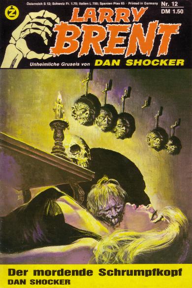 Schon eine etwas seltsame story vom Altmeister. Ich Rede hier vom Aufbau der Geschichte. Ich fand den Anfang nämlich richtig klasse und hätte mir durchaus ne komplette Geschichte mit dem Schwarzmagier (als lebende Person) vorstellen können. Die ganze Inszenierung (Estrello's fieser Trick mit der Hypnose bei Anja und dessen Folgen/Verlauf) war echt gut in Szene gesetzt. War richtig emotional ...man litt quasi mit den beiden mit. Ehrlich gesagt, hätte ich die ganze Schrumpfkopf-Arie eigentlich überhaupt nicht gebraucht. Ist halt aber auch nur mein persönliches Empfinden. Der Roman machte quasi in der Mitte eine ganz neue Wendung durch. Denn erst ab da ging es Richtung "titelgebender Schrumpfkopf" und auch der Held der Serie nahm erst von da ab an seine Arbeit auf. Das Finale fand ich auch einwenig merkwürdig. Da sitzt Larry umringt von zig bewaffneten Jivaros, deren Speere mit Gift präpariert worden waren, und er lässt den coolen raushängen. Für mich nicht so ganz nachvollziehbar. Auch die Landung des Helicopter im tiefsten Dschungel passte da ins Bild.