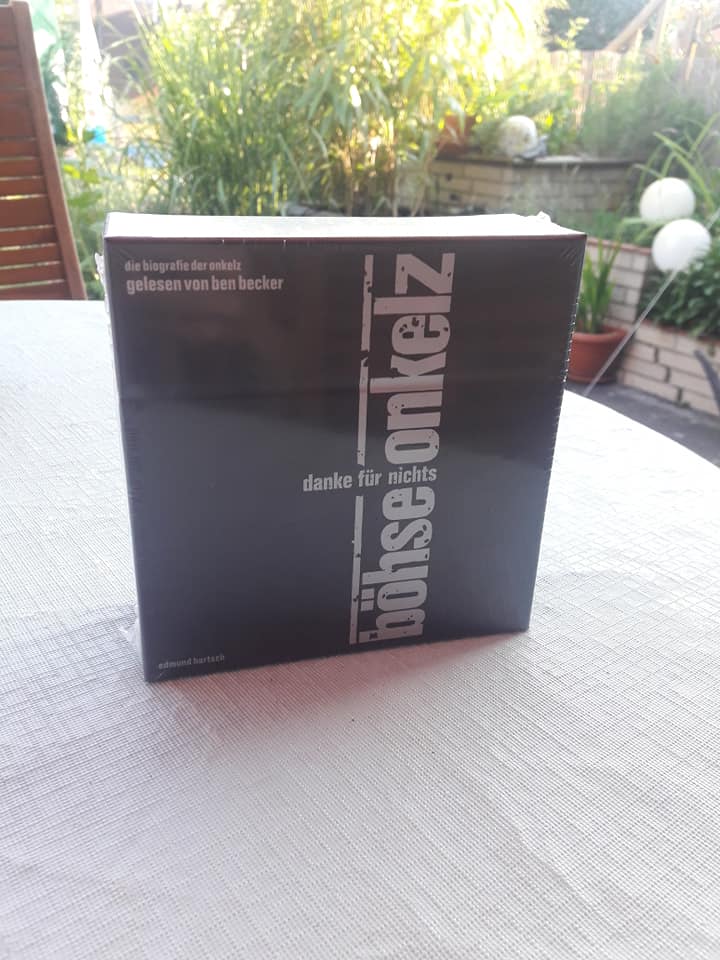Das Ding kommt sooo geschmeidig um die Ecke und avanciert sich aus dem Stand zu einer der ONKELZ Lieblingsveröffentlichungen. Sie haben es ja bereits geschrieben: Den am eigenen Leib erlebten Irrsinn von Ben Becker mit derart viel Liebe vorgetragen zu bekommen, schlägt alles! Ben Becker erweckt nun die schonungslose Geschichte der Band zu neuem Leben. „Danke für Nichts“, im Detail: 11 CDs – das fast komplette Werk als Hörbuch, umfangreiches, 100-seitiges Booklet mit unzähligen Fotos, und vielen Song Raritäten in einem dicken, stabilen Schuber. Die ONKELZ-Biografie geschrieben von Eddy Hartsch, eingesprochen von Ben Becker und angereichert mit vielen Onkelz-O-Tönen.
