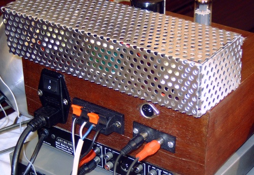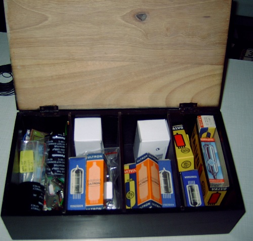 Dazu kamen ein paar zugekaufte Buchsen, Elkos, Röhrensockel, Alu-Drehknopf, Alu-Lochblech, Visaton 100V= Ausgangs-Übertrager, Schellack und anderer Kleinkram: verbaut wurden etwa 20€.