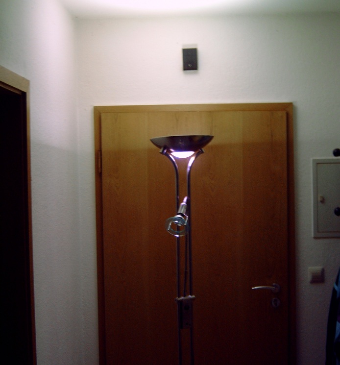 Es war mal wieder Sperrmüll: defekter ehemals dimmbarer 80-300Watt Edelstahl Deckenfluter. Am letzten Wochenende: nun ist es ein 10 Watt LED-Deckenfluter.