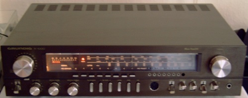 Grundig R1000-1 2x40Watt (an 8Ohm) Receiver. 4,3€ von Ebay mit "winzigen" Mängeln. Der UKW Dreh-Ko. und die Seilumlenkung war etwas klamm. Die PLL hatte altersbedingt am Anfang etwas mit dem Widerstand aus alten Elkos zu kämpfen. Das hatte sich glücklicherweise nach einer Stunde Spielzeit erst mal von selbst gelöst. Eine Skalenleuchte muss ersetzt werden. Für ein über 30 Jahre altes Gerät fast schon unglaublich, dass da nicht mehr zu machen war.