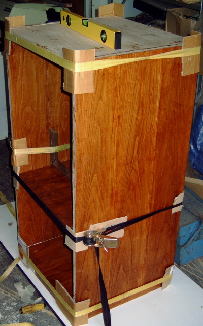 Danach gab es einen Test: Vintage Audio auf maßgeschneiderter Kirsche. ;o) Da fehlten noch die Rollen, Furnier und ein Einlegeboden.