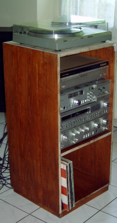 Der Plattenspieler hat jetzt eine sehr angenehme Höhe (ca. 1m). :alt: Ich bin froh wenn es komplett fertig ist.