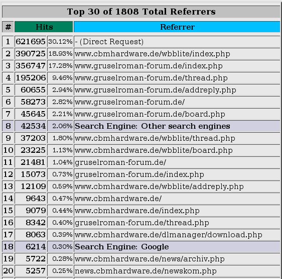 Nur mal kurz am Rande. Ich habe eben einem Blick in die Statistiken geworfen. Unser Forum war im letzten Monat gut besucht. In die Statistik fließt zwar noch eine andere Webseite ein, aber den wesentlich größeren und entscheidenden Anteil hat das Forum :