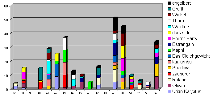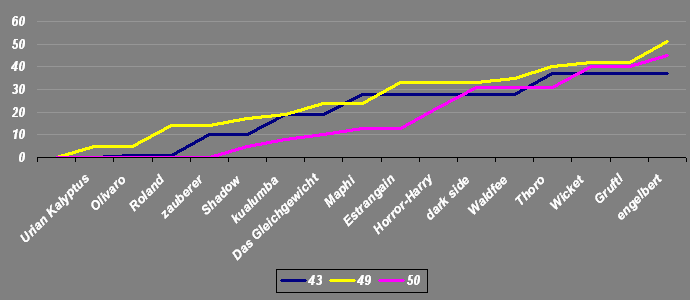 Bitte gebt wieder eure 5 Favoriten an, wobei Platz 1 die meisten Punkte und Platz 5 die wenigsten Punkte bekommt (Nach dem System 9-5-3-2-1).