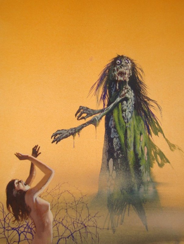 Diese Glubschaugen stören mich auf den Covern immer. Bzw. diese großen Pupillen, wie bei der Muppet-Show. Deshalb ist das Cover für mich auch nur Platz 2 gewesen. Der Rest stimmt, die verwesende Leiche ist sehr schön gezeichnet. Naja, die Nackte hat schon wieder so eine seltsame Geste drauf. Wie letztens das Friedhofs-Cover, da hat die erschrockene Frau doch genau so gemacht. __________________