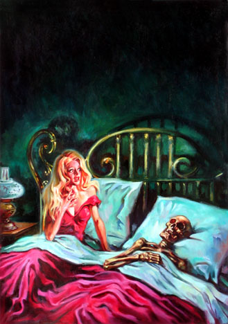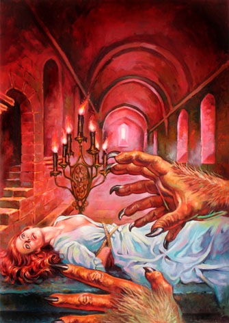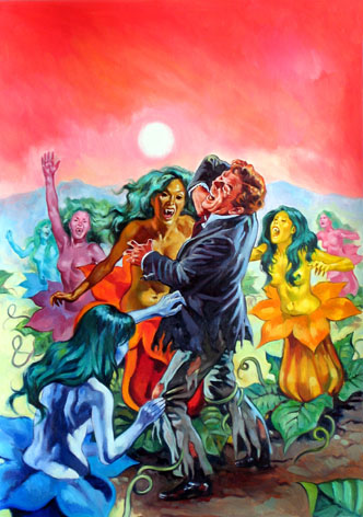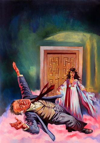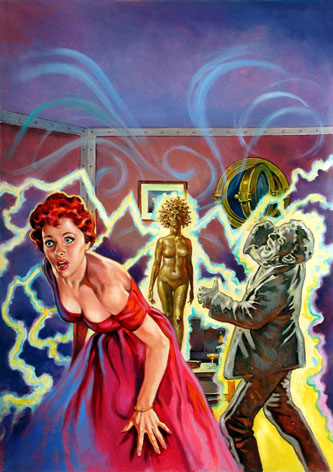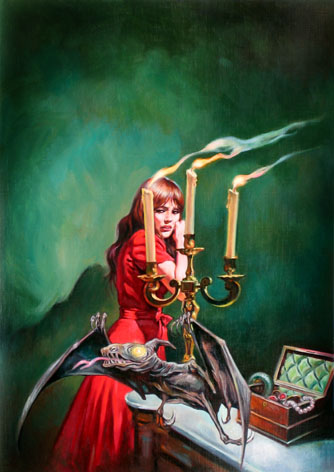 Bei Lutohin ist es so, dass mir da sehr oft seine Hintergründe gefallen, während das Hauptmotiv wenig bis gar nicht gelungen ist; es sind auch immer dieselben Stereotypen, die einander auch noch ähnlich sind. Eine Frau, eine Bedrohung, dazu ein Element, das man als "phantastisch/unheimlich" bezeichnen kann - fertig sind viele Lutohin-Bilder. Und seine Frauen sahen auch immer gleich aus. Aber dann gibt es auch noch andere, weitaus gelungenere Bilder von ihm. Dass er hin und wieder Fotos in seine Werke eingeklebt hat, habe ich persönlich immer als künstlerische Schwäche empfunden. Weitere Beispiele dieser Arbeiten sind VHR 216, 306, 320 und 330,