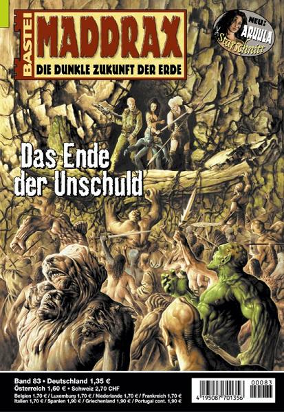 Cover: Maddrax, Aruula, Rulfan und Quart’ol gegen die „Soldaten“ der Daa’muuren. Schöne Darstellung.