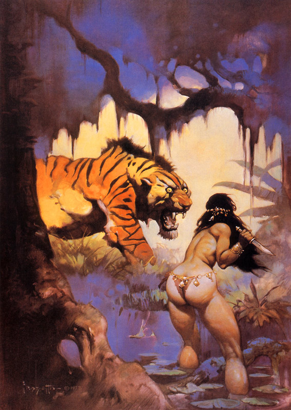 Wie so oft bei spanischen Zeichnern aus der damaligen Zeit wurde ohne Skrupel von anderen großen Meistern kopiert. In diesem Fall von Frank Frazetta. (Die folgenden zwei Bilder habe ich natürlich nicht. Die sind unbezahlbar)