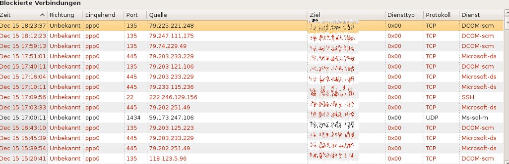 Ich habe noch einen kleinen Nachtrag. Meine Firewall hat am heutigen Nachmittag mal alle Zugriffe auf sensible Ports eines Windows-Systems aufgezeichnet. Bei einem Linux-System haben die eigentlich keine Bedeutung. Für einen Windows-Rechner können diese Anfragen sehr gefährlich werden. Die kommen besonders oft aus dem östlichen Weltteil. Zwei IPs habe ich mal geprüft: Russland und China.