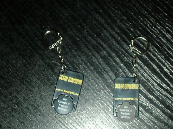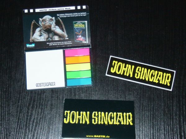 Eigentlich hat meine Händlerin vor dem Start der Vampira Neuauflage beim Verlag angefragt, ob es dazu Werbung, sprich Plakate oder evtl. Merchandise gibt. Nach 2 Wochen kam vom Verlag die Meldung, es gäbe leider noch keine Vampira Werbeplakate oder sonstiges, aber dafür würden sie ein wenig Merchandise zum Geisterjäger John Sinclair beifügen ...