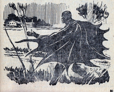 Der Zeichner Theo Thomas hat für diesen Fledermaus-Roman auf den Seiten 4, 11, 40 und 55 vier Innenillustrationen gezeichnet. Dies ist eine davon.